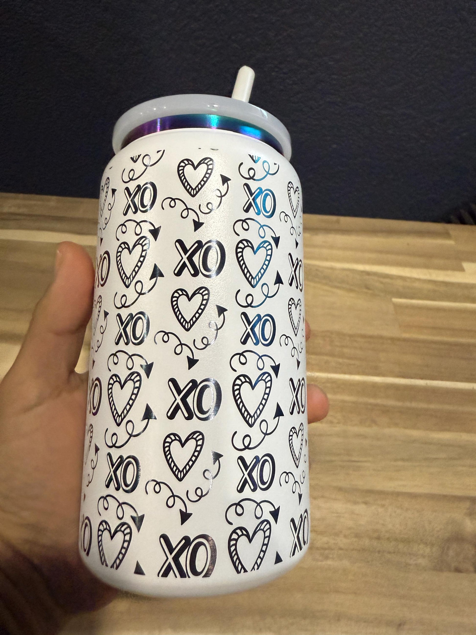 16 oz Iridescent Soda can style Tumbler w/Lid and Straw, Valentines XOXO Hearts Fashion, Gift For Her, Birthday Gift, Anniversary Present