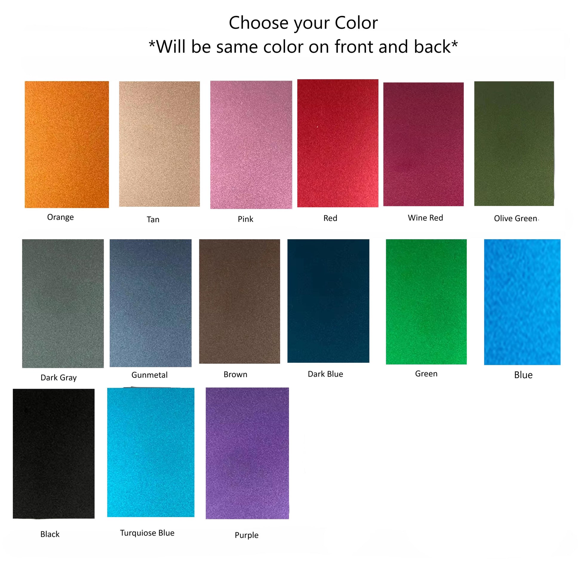 Choose your wallet color from the available options (this will be the trim color, and also the back color if you select front-only printing).